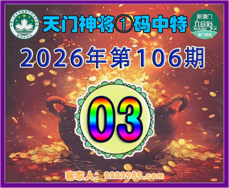 106期:〖天门神将〗 ①码中特【03】开:00准