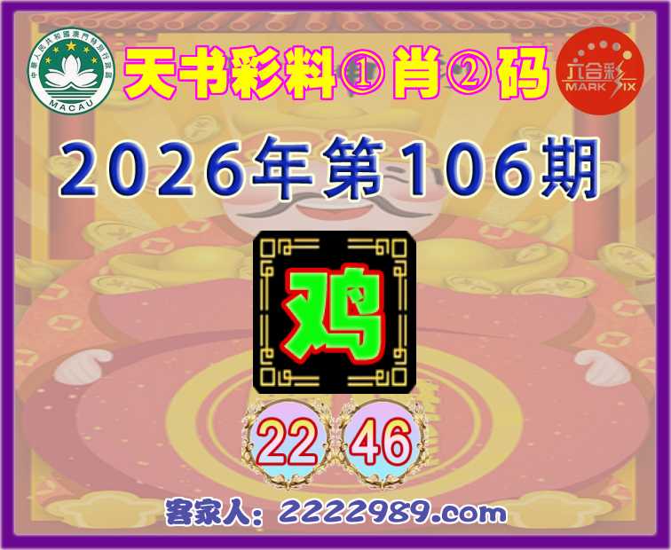 106期:『天书彩料』 ①肖②码【鸡】【22.46】开:00准