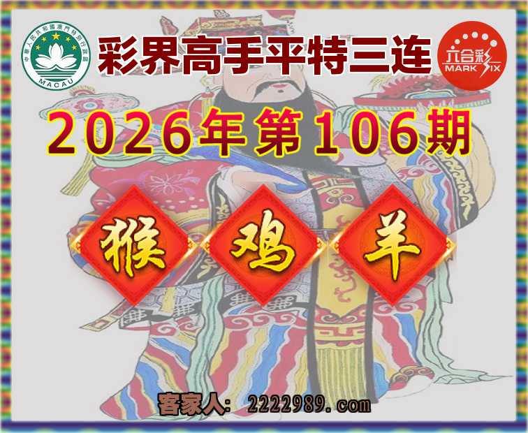 106期:【彩界高手】 平特三连【猴鸡羊】开:00准