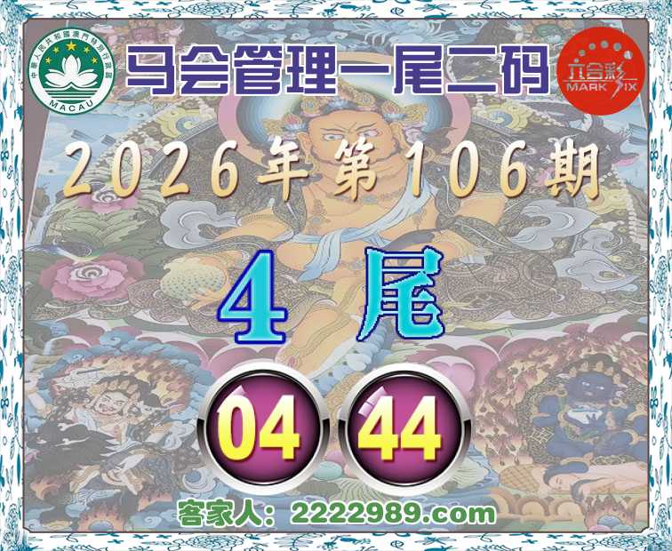 106期:《马会管理》 一尾二码【4尾主:04.44】开:00准